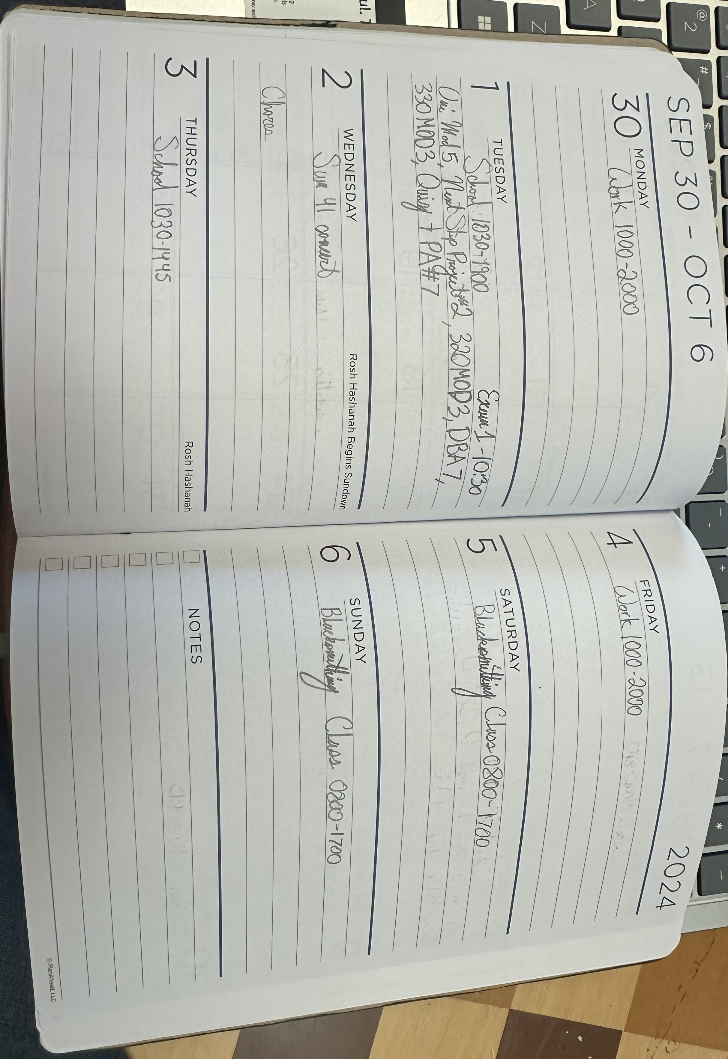 Normally, I have school from 10:30 AM to 7 PM, but today I managed to take a break from 2:45 PM to 6 PM and get a lot of homework done. It was a major task on my to-do list, so I pushed through most of it with only a few short breaks to avoid burnout. Afterward, I went to my final class, enjoyed it, and then came home to relax before heading to bed.